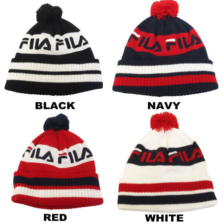 【メール便送料無料】ニット帽【FILA フィラ】ニットキャップ ボンボン付き ジャガード ニットキャップ メンズ レディース (4色) [158-113225] 【fila フィラ ニット帽 メンズ レディース 帽子 男女兼用 ユニセックス ダンス スポーツ 黒】